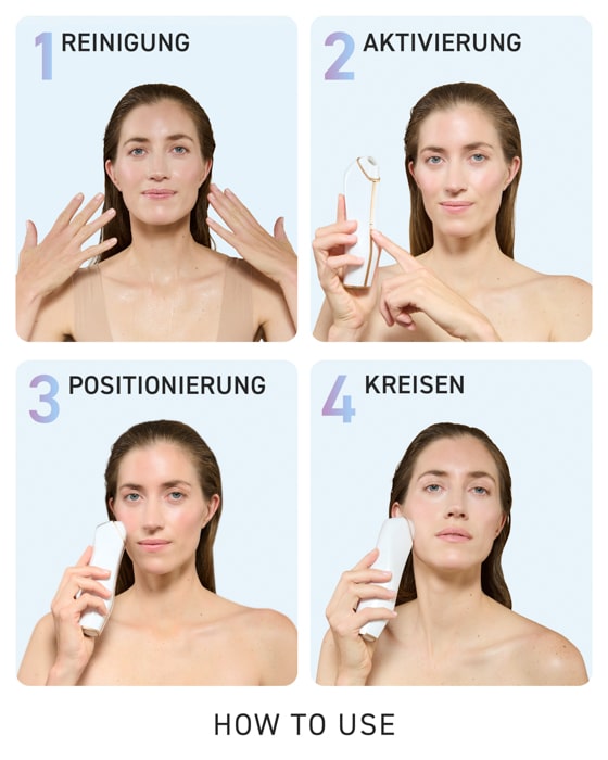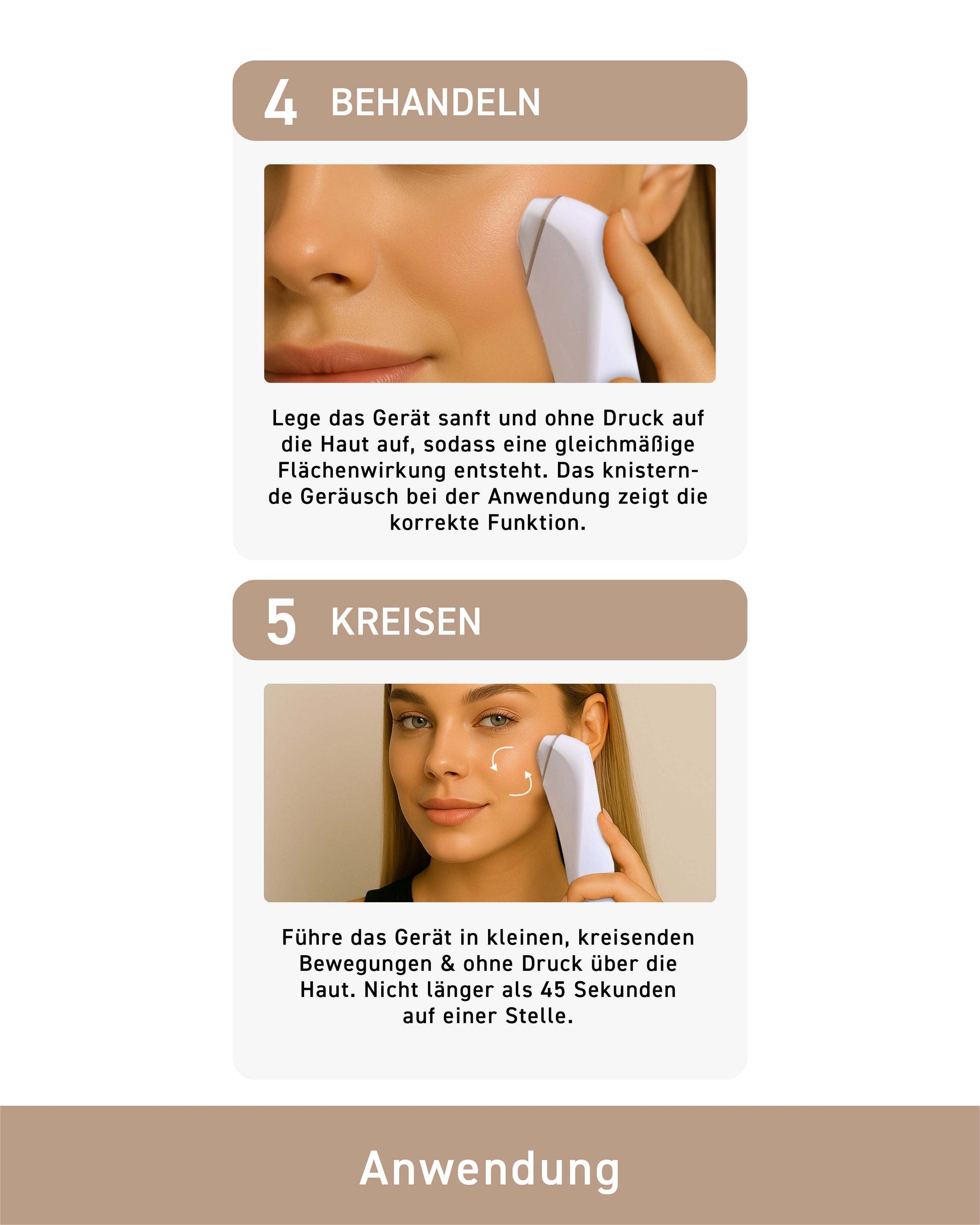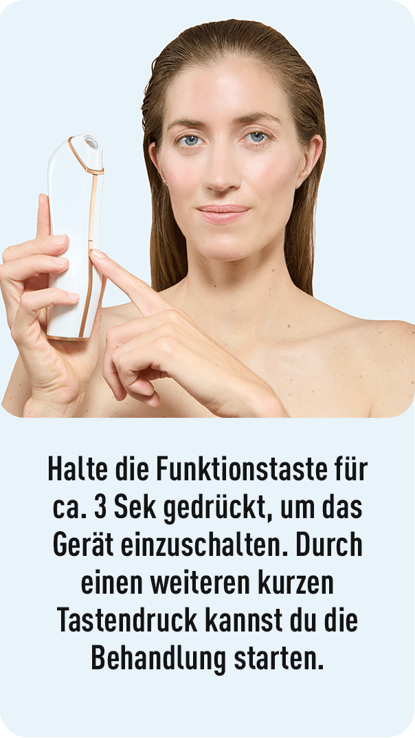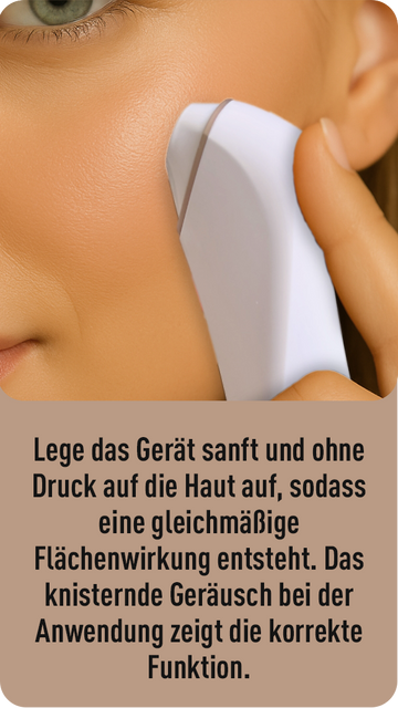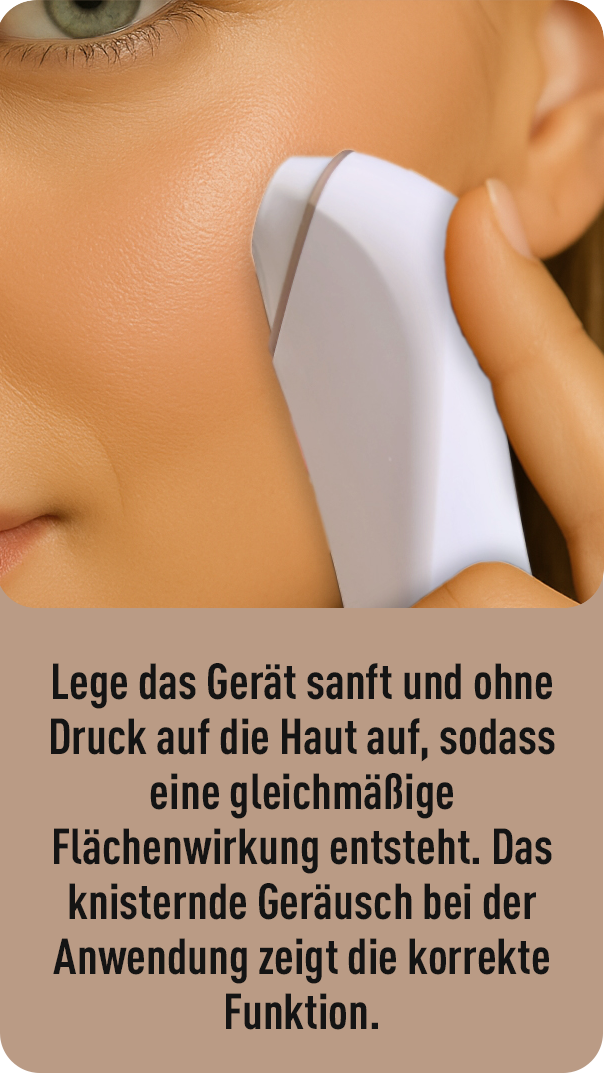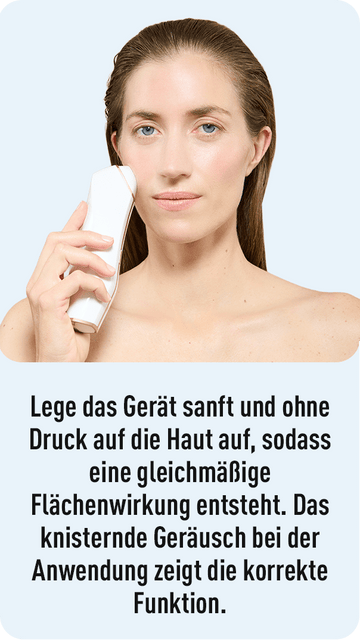 Beides ist möglich. Wir empfehlen jedoch eher die "gleitende" Anwendung. Gleite mit dem Gerät langsam über alle Gesichts- und /oder Hautareale die du behandeln möchtest.