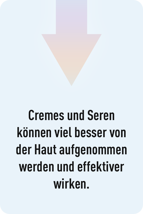Gleichzeitig wird die Zellaktivität angeregt – die Haut erhält neue Energie, die Durchblutung wird gefördert und die natürliche Regeneration der Haut unterstützt. Auch die Produktion von Kollagen wird stimuliert, was die Hautstruktur stärkt und glättet. So ist deine Haut optimal vorbereitet, um wertvolle Wirkstoffe aus Pflegeprodukten besser aufzunehmen.
