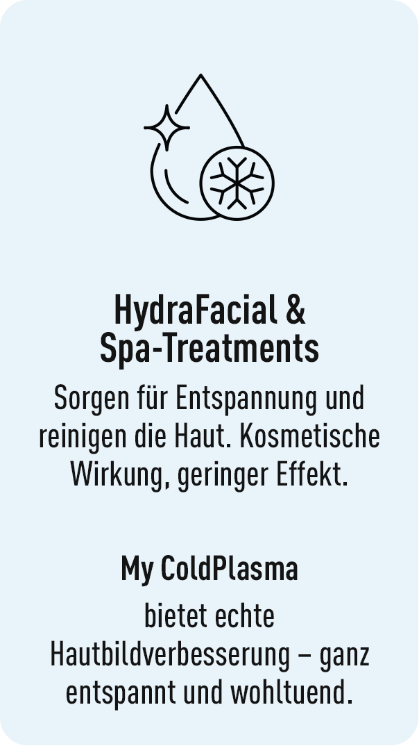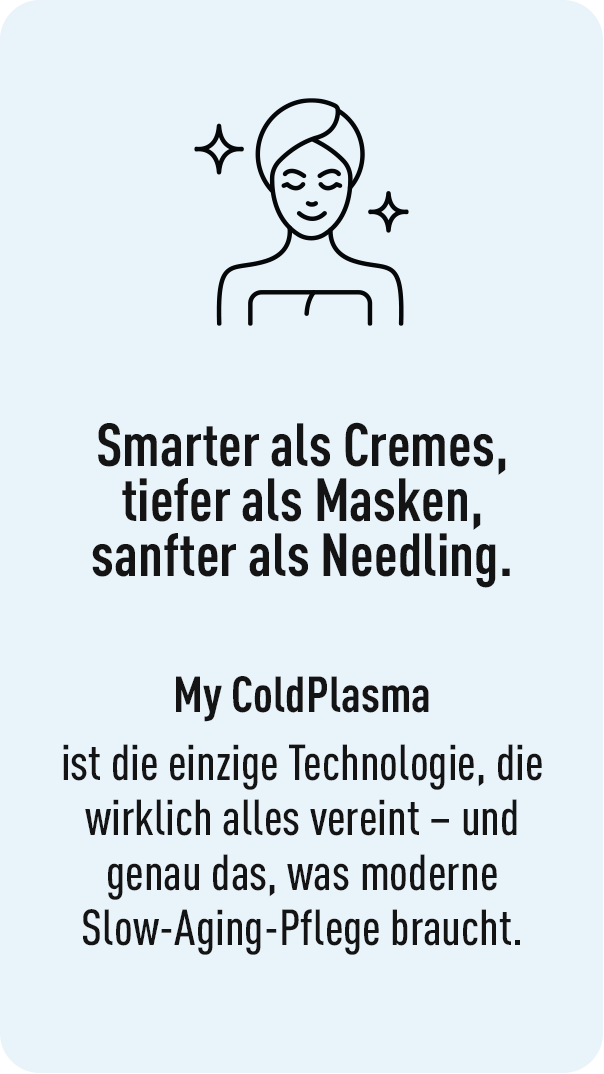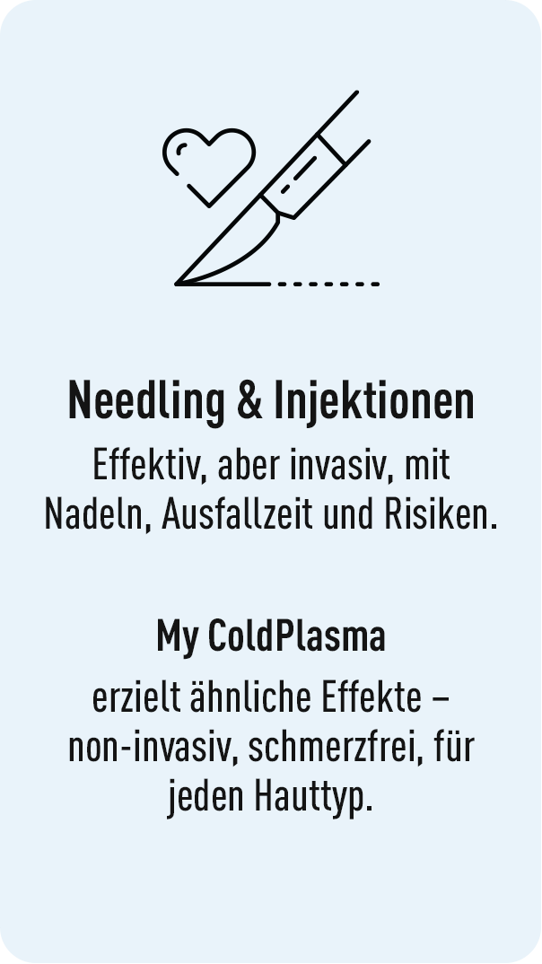 Die Behandlung mit Kaltplasma ist nicht-invasiv und erfordert keine Ausfallzeiten. Das macht sie zu einer idealen Ergänzung Ihrer kosmetischen Pflege – auch bei sensibler Haut.