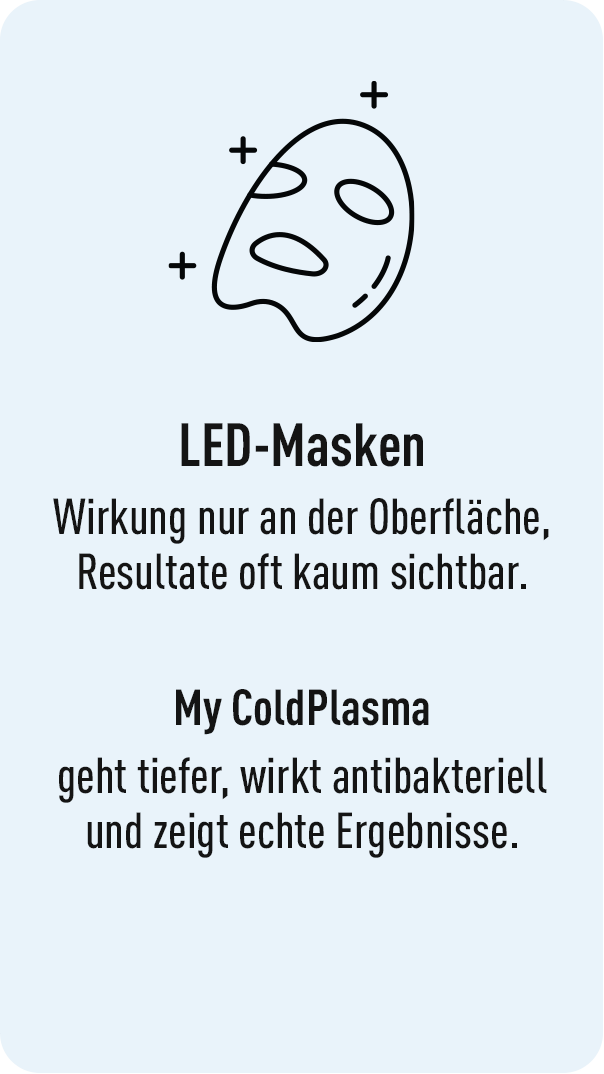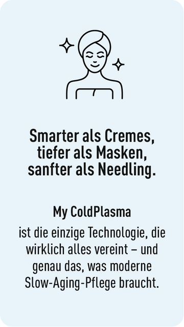 Das My Coldplasma Home nutzt sanft temperiertes Kaltplasma, um die Haut sichtbar zu verbessern und intensiv zu pflegen. Selbst bei unreiner, empfindlicher oder anspruchsvoller Haut zeigt die Behandlung beeindruckende Ergebnisse: Das Hautbild wird klarer, feiner und ebenmäßiger.