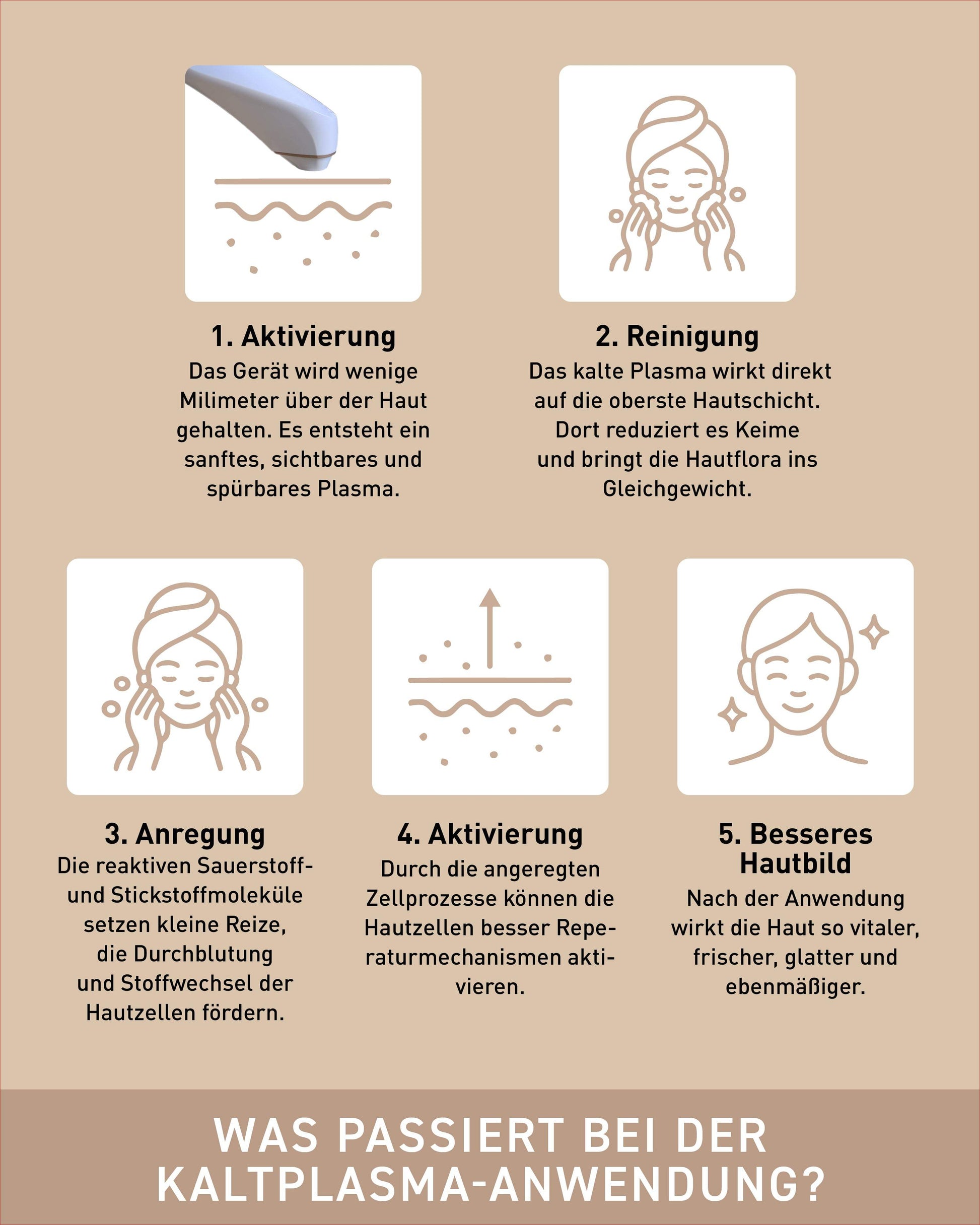 Kaltes Plasma in der kosmetischen Anwendung regt Deinen Zellmetabolismus an, so daß sich Deine Haut besser regenerieren kann. Gib ihr gern einen bis zwei Tage Zeit zwischen den Anwendungen, um alle diese Informationen zu verarbeiten!