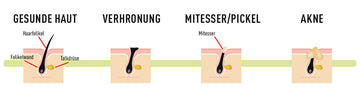 - Abgestorbene Hautzellen & Talg sammeln sich an