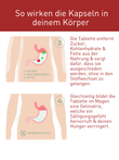 Die Tablette entfernt Zucker, Kohlenhydrate und Fett aus deiner Nahrung & sorgt dafür, das sie ausgeschieden werden, ohne in deinen Stoffwechsel zu gelangen. Gleichzeitig wird in deinen Magen eine Gelmatrix gebildet, die ein Sättigungsgefühl hervorruft.