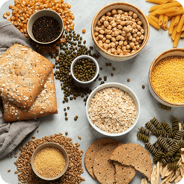 Achte auf eine ballaststoffreiche Ernährung mit Vollkornprodukten, Hülsenfrüchten, Gemüse und Obst.