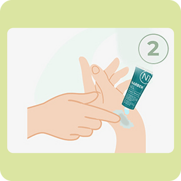 Trage das N1 Narben Gel auf die saubere, trockene Haut auf. Achte darauf, dass du das Gel in einer sehr dünnen Schicht aufträgst.