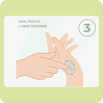 Massiere das Gel 2x tägl. mit kreisenden Bewegungen in die Narbe (+umliegende Haut) ein & lasse es vor Kosmetika-Auftragung für ca. 4-5 Min. trocknen.