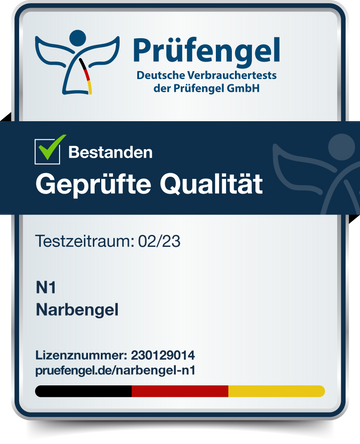Das Produkt ist eine Narbenpflege für flachere, weichere, elastischere und weniger sichtbare Narben. Das Narbengel ist bequem und einfach in der Anwendung und kann sowohl bei neuen als auch bei bestehenden Narben verwendet werden.Das Narbengel der Marke N1 erhält von Prüfengel deshalb eine Gesamtnote von 1,8 und hat sich damit erfolgreich für unser Testsiegel zertifiziert.