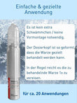 Bei der Anwendung wird kein Kunststoffapplikator benötigt, da der Dosierkopf so geformt ist, dass die Warze gezielt behandelt werden kann.