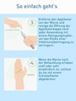 Reinige die Öffnung der Applikatorkappe nach jeder Anwendung mit einem Reinigungstupfer, um das Risiko einer Infektionsübertragung zu verringern.